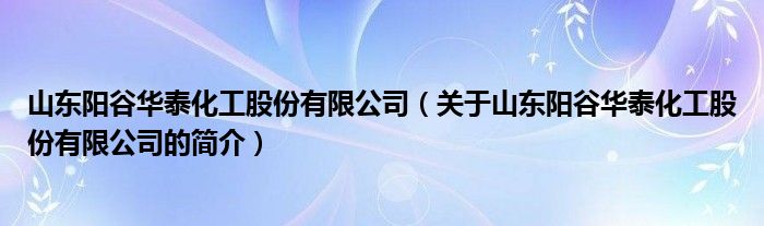 本文關于山東陽谷華泰化工股份有限公司的簡介就講解完畢,希望對大家有所幫助。