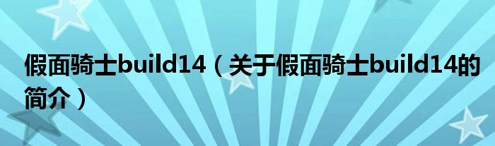 本文關于假面騎士build14的簡介就講解完畢,希望對大家有所幫助。