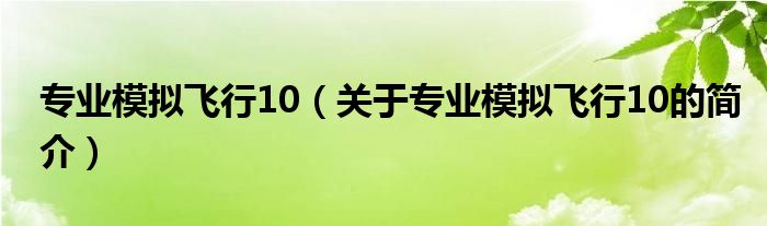 本文關(guān)于專業(yè)模擬飛行10的簡(jiǎn)介就講解完畢,希望對(duì)大家有所幫助。