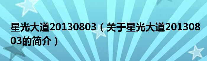 本文關(guān)于星光大道20130803的簡(jiǎn)介就講解完畢,希望對(duì)大家有所幫助。