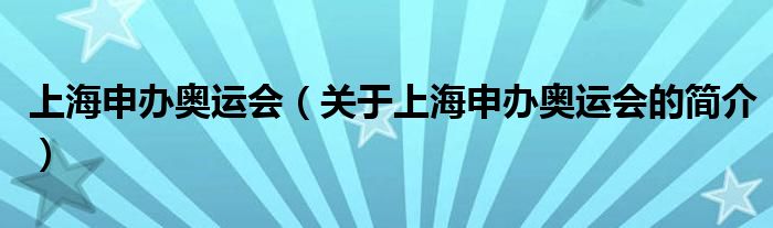 本文關于上海申辦奧運會的簡介就講解完畢,希望對大家有所幫助。