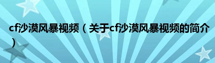 大家好,cf沙漠風暴視頻,關于cf沙漠風暴視頻的簡介很多人還不知道,現在讓我們一起來看看吧!