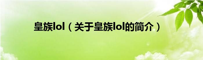 大家好,皇族lol,關于皇族lol的簡介很多人還不知道,現在讓我們一起來看看吧!