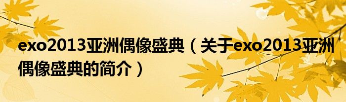 本文關于exo2013亞洲偶像盛典的簡介就講解完畢,希望對大家有所幫助。
