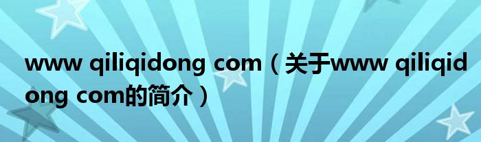 大家好,www qiliqidong com,關于www qiliqidong com的簡介很多人還不知道,現在讓我們一起來看看吧!