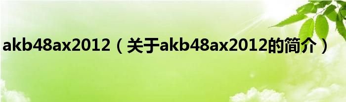 本文關于akb48ax2012的簡介就講解完畢,希望對大家有所幫助。