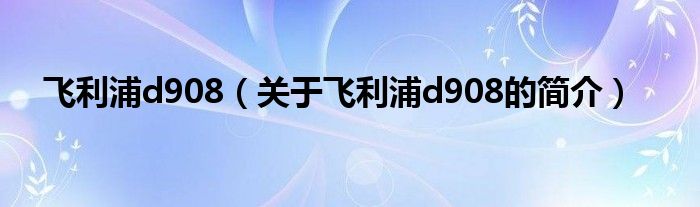 大家好,飛利浦d908,關于飛利浦d908的簡介很多人還不知道,現在讓我們一起來看看吧!