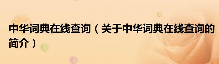 本文關于中華詞典在線查詢的簡介就講解完畢,希望對大家有所幫助。