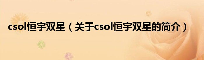 大家好,csol恒宇雙星,關于csol恒宇雙星的簡介很多人還不知道,現在讓我們一起來看看吧!