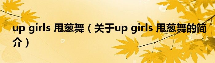 本文關于up girls 甩蔥舞的簡介就講解完畢,希望對大家有所幫助。