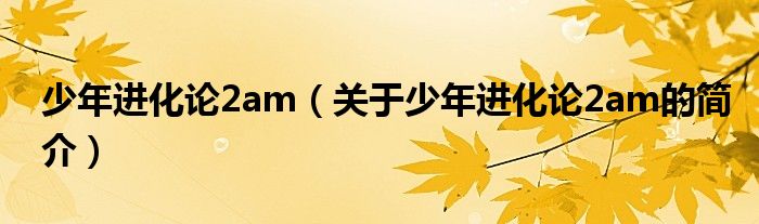 本文關于少年進化論2am的簡介就講解完畢,希望對大家有所幫助。