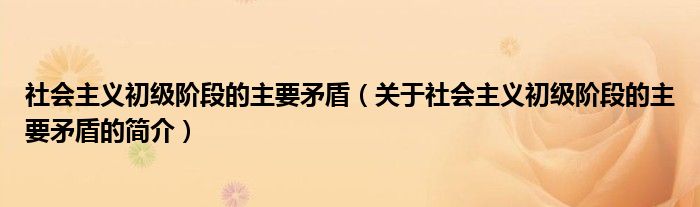 本文關于社會主義初級階段的主要矛盾的簡介就講解完畢,希望對大家有所幫助。