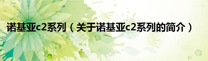 本文關于諾基亞c2系列的簡介就講解完畢,希望對大家有所幫助。