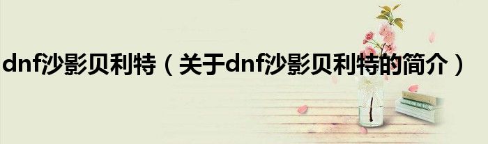 大家好,dnf沙影貝利特,關于dnf沙影貝利特的簡介很多人還不知道,現在讓我們一起來看看吧!