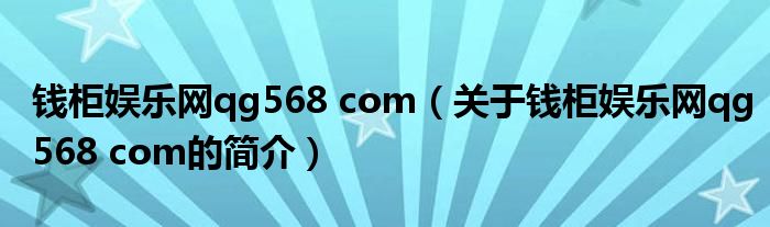 本文關于錢柜娛樂網qg568 com的簡介就講解完畢,希望對大家有所幫助。