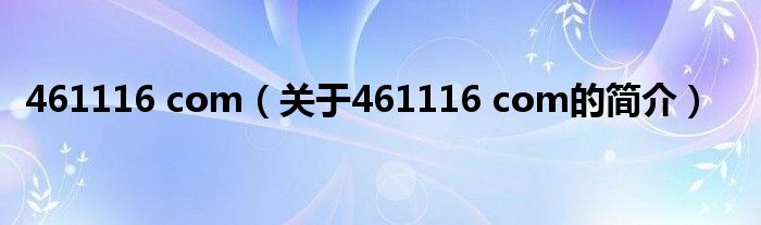 本文關(guān)于461116 com的簡介就講解完畢,希望對大家有所幫助。