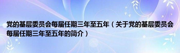 本文關于黨的基層委員會每屆任期三年至五年的簡介就講解完畢,希望對大家有所幫助。