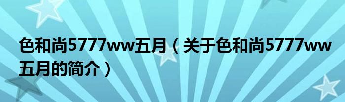 本文關(guān)于色和尚5777ww五月的簡(jiǎn)介就講解完畢,希望對(duì)大家有所幫助。