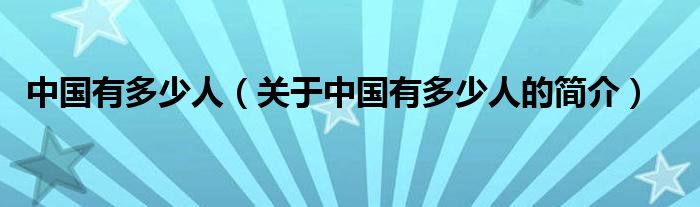 本文關于中國有多少人的簡介就講解完畢,希望對大家有所幫助。