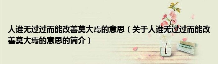 本文關(guān)于人誰無過過而能改善莫大焉的意思的簡介就講解完畢,希望對(duì)大家有所幫助。