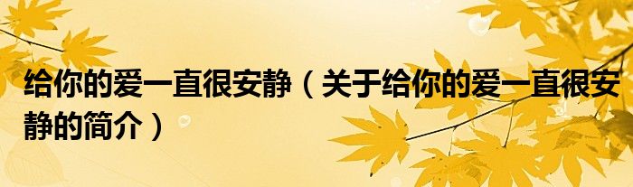 本文關于給你的愛一直很安靜的簡介就講解完畢,希望對大家有所幫助。