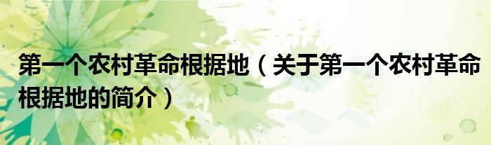 大家好,第一個農村革命根據地,關于第一個農村革命根據地的簡介很多人還不知道,現在讓我們一起來看看吧!