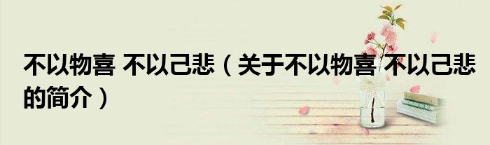 本文關于不以物喜 不以己悲的簡介就講解完畢,希望對大家有所幫助。