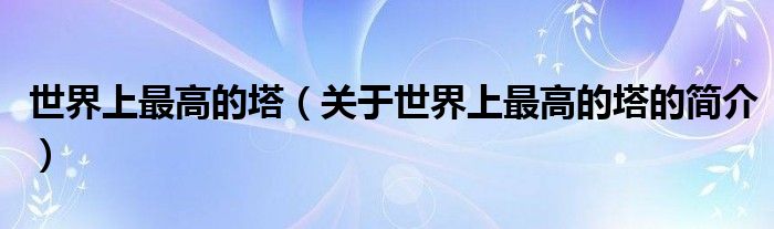 大家好,世界上最高的塔,關于世界上最高的塔的簡介很多人還不知道,現在讓我們一起來看看吧!