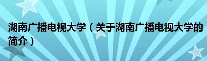 本文關于湖南廣播電視大學的簡介就講解完畢,希望對大家有所幫助。