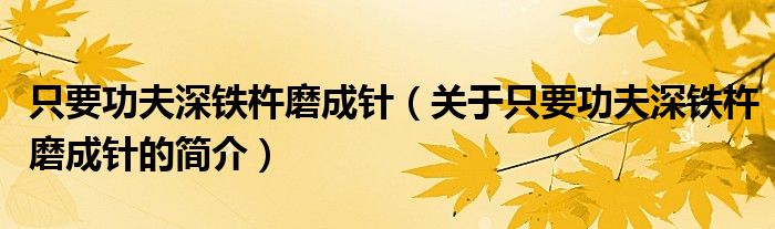 本文關于只要功夫深鐵杵磨成針的簡介就講解完畢,希望對大家有所幫助。
