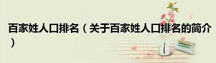 本文關(guān)于百家姓人口排名的簡(jiǎn)介就講解完畢,希望對(duì)大家有所幫助。