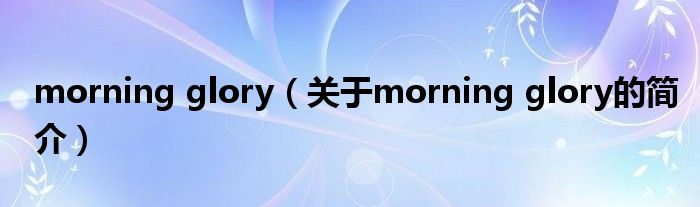 大家好,morning glory,關(guān)于morning glory的簡介很多人還不知道,現(xiàn)在讓我們一起來看看吧!