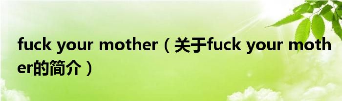 本文關于fuck your mother的簡介就講解完畢,希望對大家有所幫助。