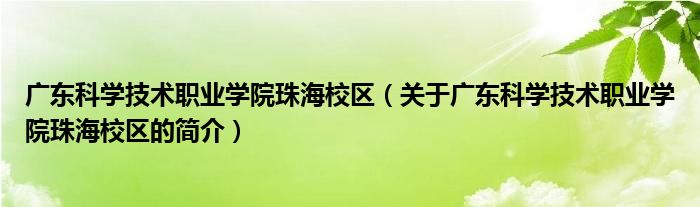 本文關(guān)于廣東科學(xué)技術(shù)職業(yè)學(xué)院珠海校區(qū)的簡介就講解完畢,希望對大家有所幫助。