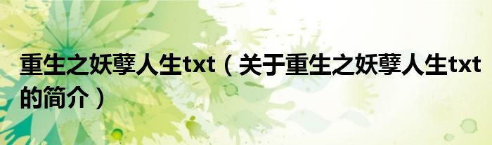 本文關于重生之妖孽人生txt的簡介就講解完畢,希望對大家有所幫助。