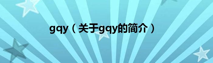 本文關(guān)于gqy的簡(jiǎn)介就講解完畢,希望對(duì)大家有所幫助。