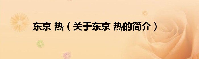 大家好,東京 熱,關于東京 熱的簡介很多人還不知道,現在讓我們一起來看看吧!