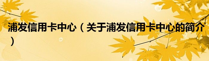 本文關于浦發(fā)信用卡中心的簡介就講解完畢,希望對大家有所幫助。