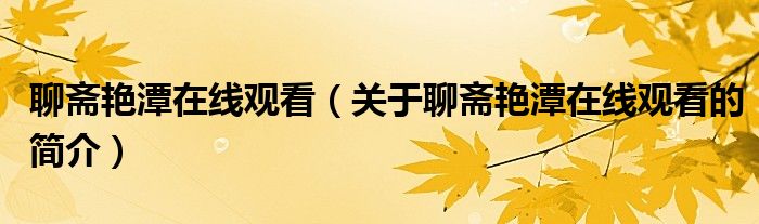 本文關于聊齋艷潭在線觀看的簡介就講解完畢,希望對大家有所幫助。