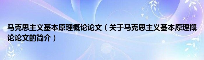 本文關于馬克思主義基本原理概論論文的簡介就講解完畢,希望對大家有所幫助。