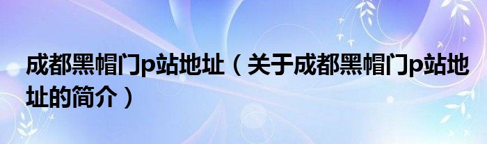 本文關(guān)于成都黑帽門p站地址的簡介就講解完畢,希望對大家有所幫助。