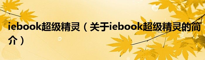 大家好,iebook超級精靈,關于iebook超級精靈的簡介很多人還不知道,現在讓我們一起來看看吧!