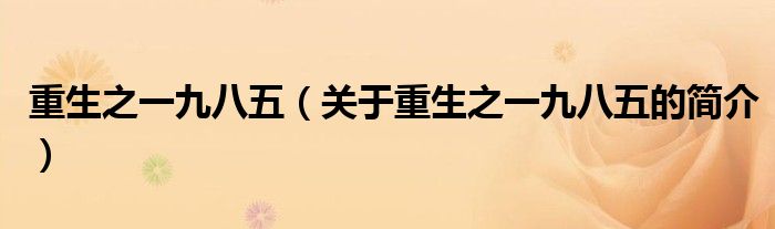本文關于重生之一九八五的簡介就講解完畢,希望對大家有所幫助。