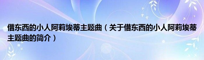 本文關于借東西的小人阿莉埃蒂主題曲的簡介就講解完畢,希望對大家有所幫助。