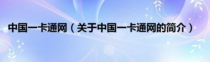 本文關于中國一卡通網的簡介就講解完畢,希望對大家有所幫助。