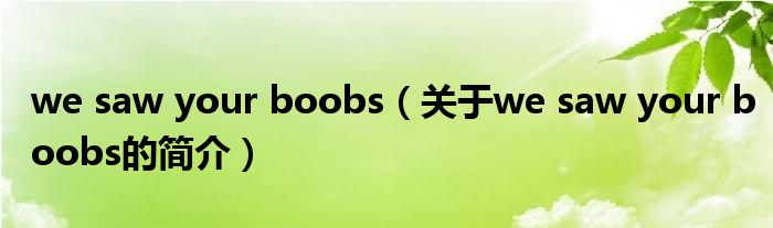 本文關(guān)于we saw your boobs的簡介就講解完畢,希望對大家有所幫助。