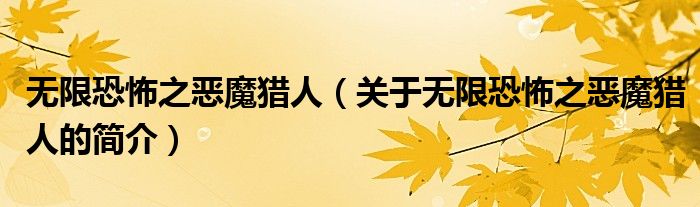 本文關于無限恐怖之惡魔獵人的簡介就講解完畢,希望對大家有所幫助。