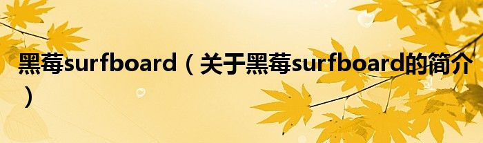 本文關于黑莓surfboard的簡介就講解完畢,希望對大家有所幫助。
