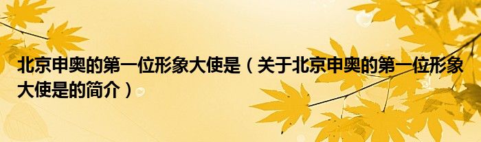 大家好,北京申奧的第一位形象大使是,關于北京申奧的第一位形象大使是的簡介很多人還不知道,現在讓我們一起來看看吧!