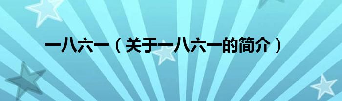 大家好,一八六一,關于一八六一的簡介很多人還不知道,現在讓我們一起來看看吧!
